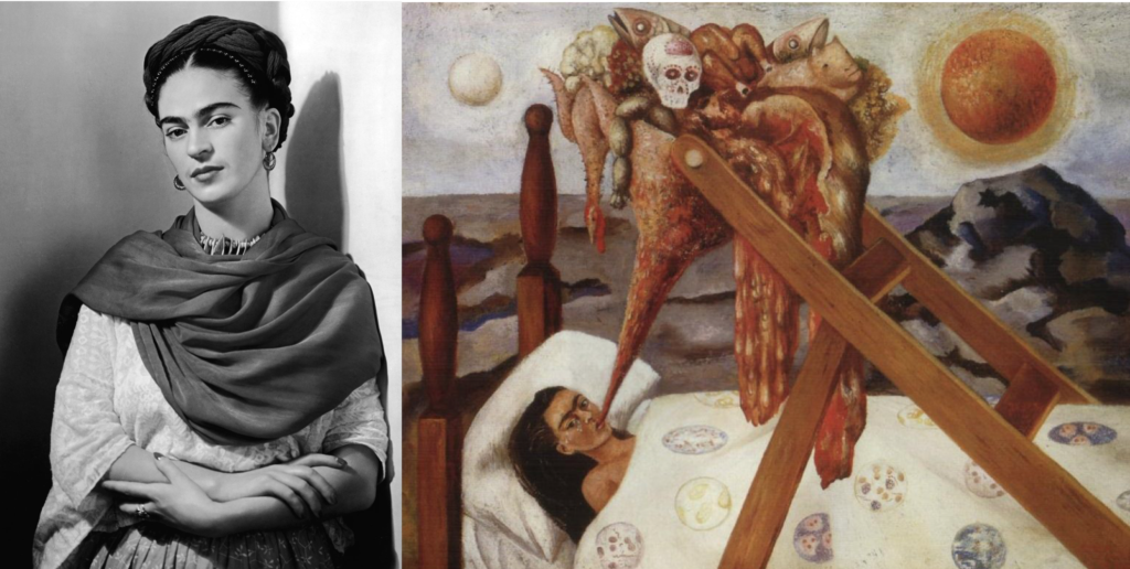 However, her ambitions were crushed in 1925, when a horrific bus accident impaled an iron rod through her pelvis, displacing three vertebrae and leaving her in a full-body cast for three months. It was during this time that she rediscovered a passion for art- knowing that her dream of becoming a doctor would never come to fruition, she considered a career as a medical illustrator in an attempt to combine her two passions. Art soon became a medium of expression, and, left alone with her thoughts, she would often paint her most familiar subject- herself.