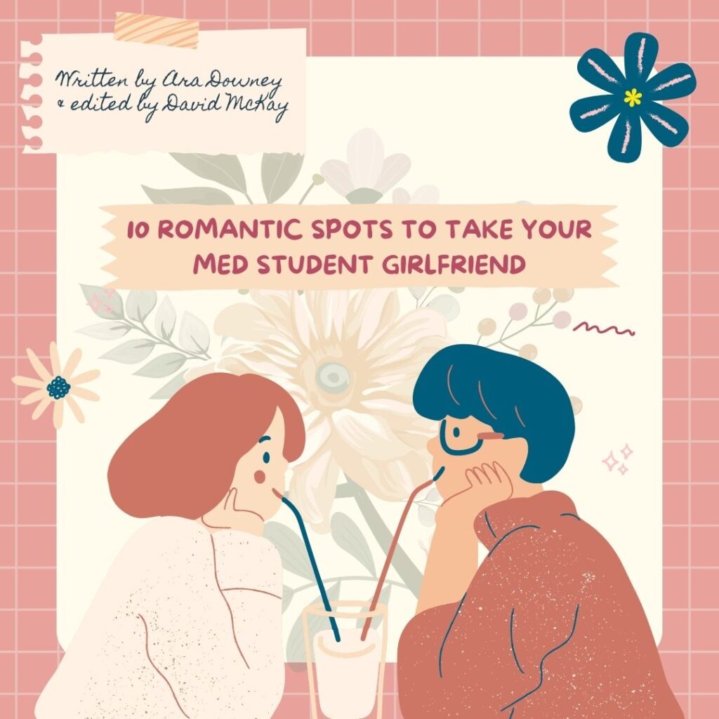 Do you want a girlfriend you only have to see once a week, when she emerges from Wally for overpriced Boost juice? Do you wish you had someone to send you texts like “want to know the pathophysiology of septic shock?” at 1am? Do you dream of being poked and prodded by someone learning how to use a stethoscope (or worse, a cannula[1])? Most of all, do you aspire to one day be married to someone with $70,000 of student debt? Look no further than a med student girlfriend! She’s smart, she’s sleep-deprived, and she doesn’t have time to cheat on you! Whether you’re a current or aspiring significant other, here are the 10 best spots to take the love of your life on a romantic date – if you can convince her to put down her Anki.