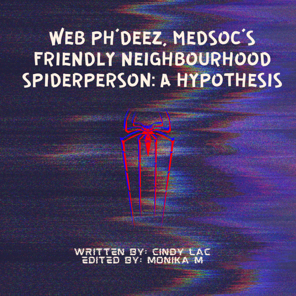 It is not a shocker that I am one of the many people who liked Spiderman: Across the Spiderverse – it is a great sequel film after all. However, I would like to claim that I am one of the very few who was willing enough to buy the cinema tickets three times over to rewatch the film. I still tear up during the heavy-hitting scenes of the movie, the subject matter and central themes being something I hold close to my heart. In fact, I have caught myself quoting lines from the film many times during my hospital days to my fellow peers, which unforunately they are slow to uptake. After many unnoticed quotes and having been taught by a tutor named very closely to Peter Parker, I have hit a climacteric point. I have taken matters to my own hands, ruminating on what could be MedSoc’s very own Spiderperson…